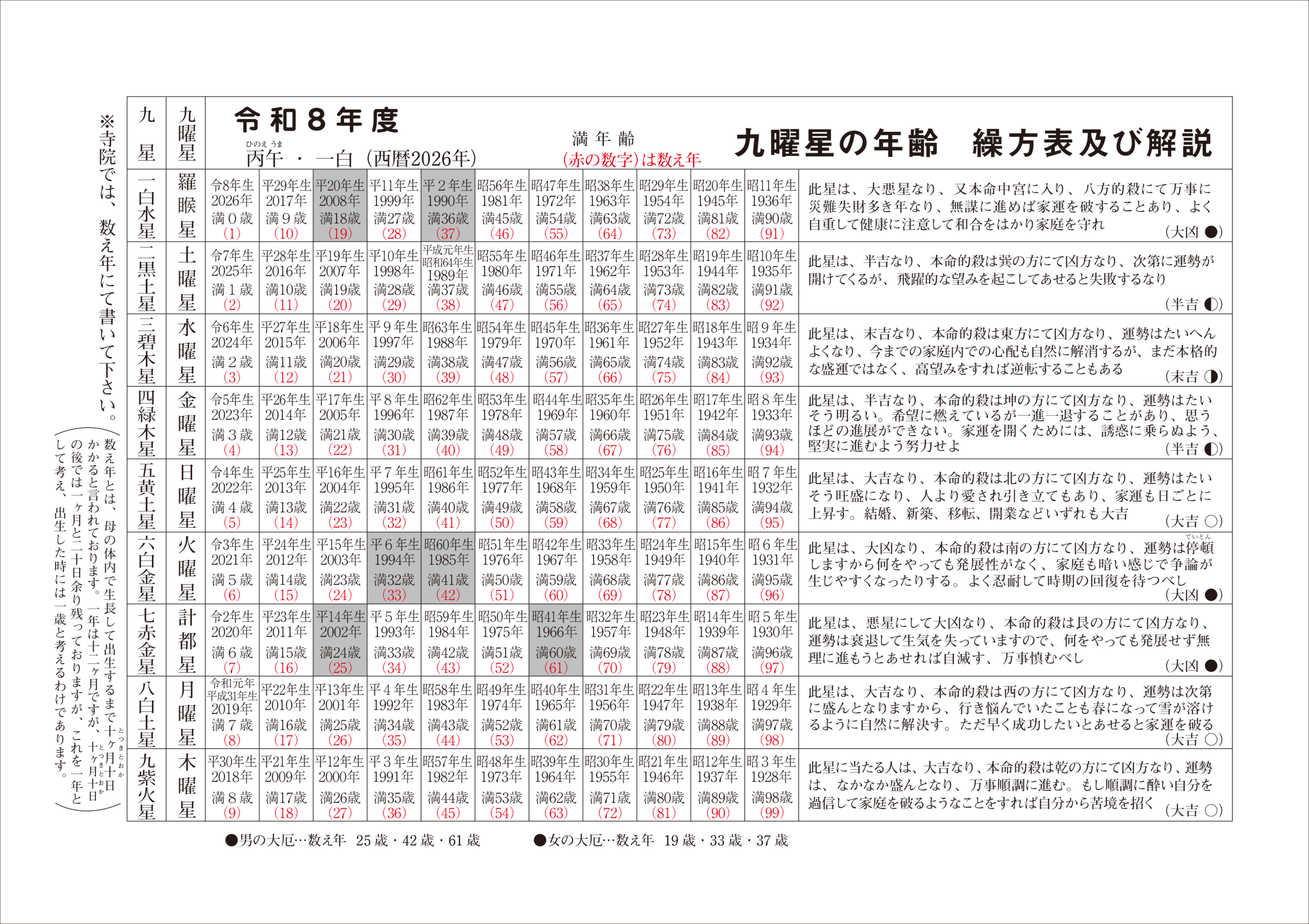 8年九曜星繰方表